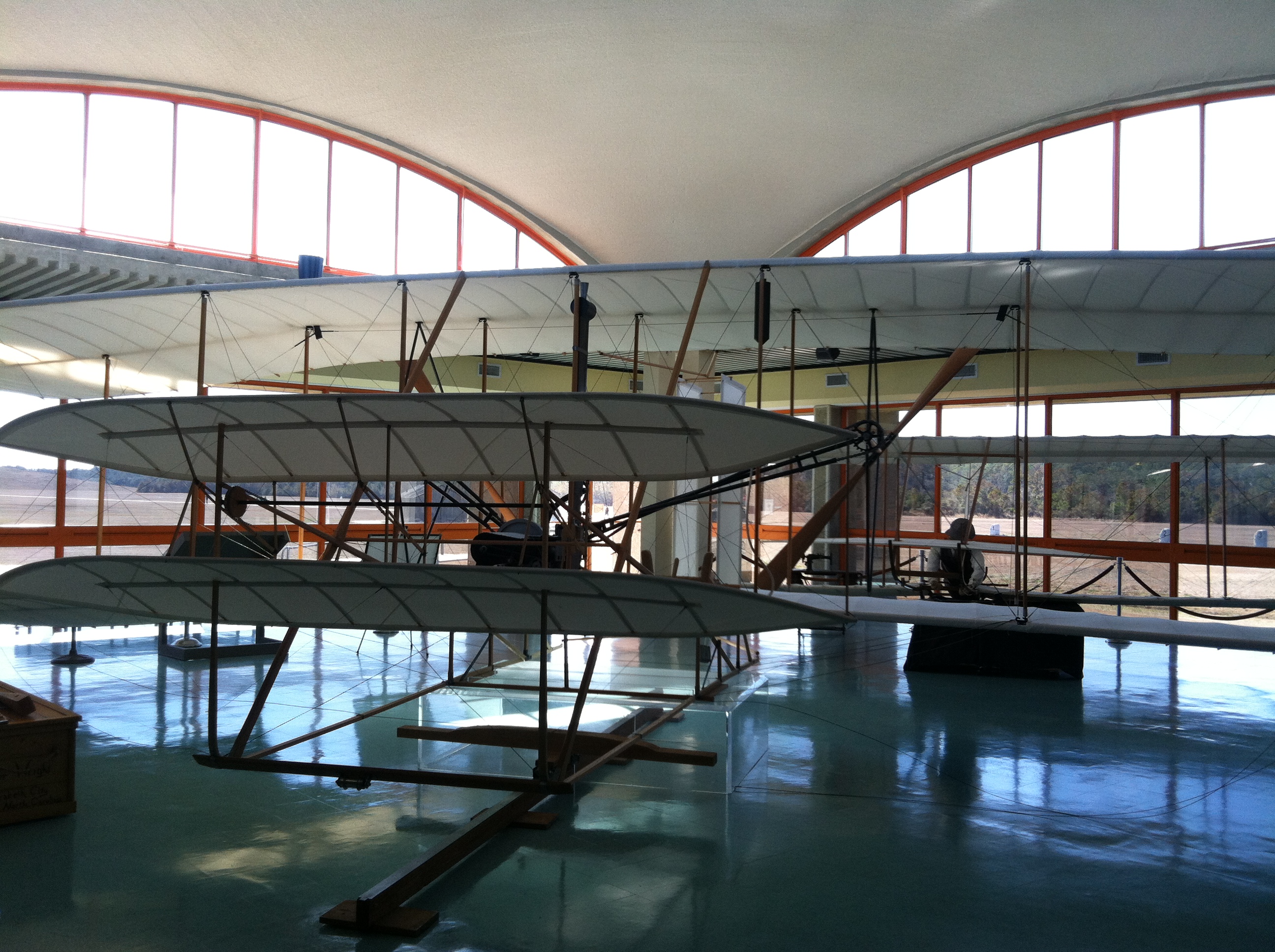 The highlight of the museum is this full-scale reproduction of Orville and Wilbur Wright’s airplane.