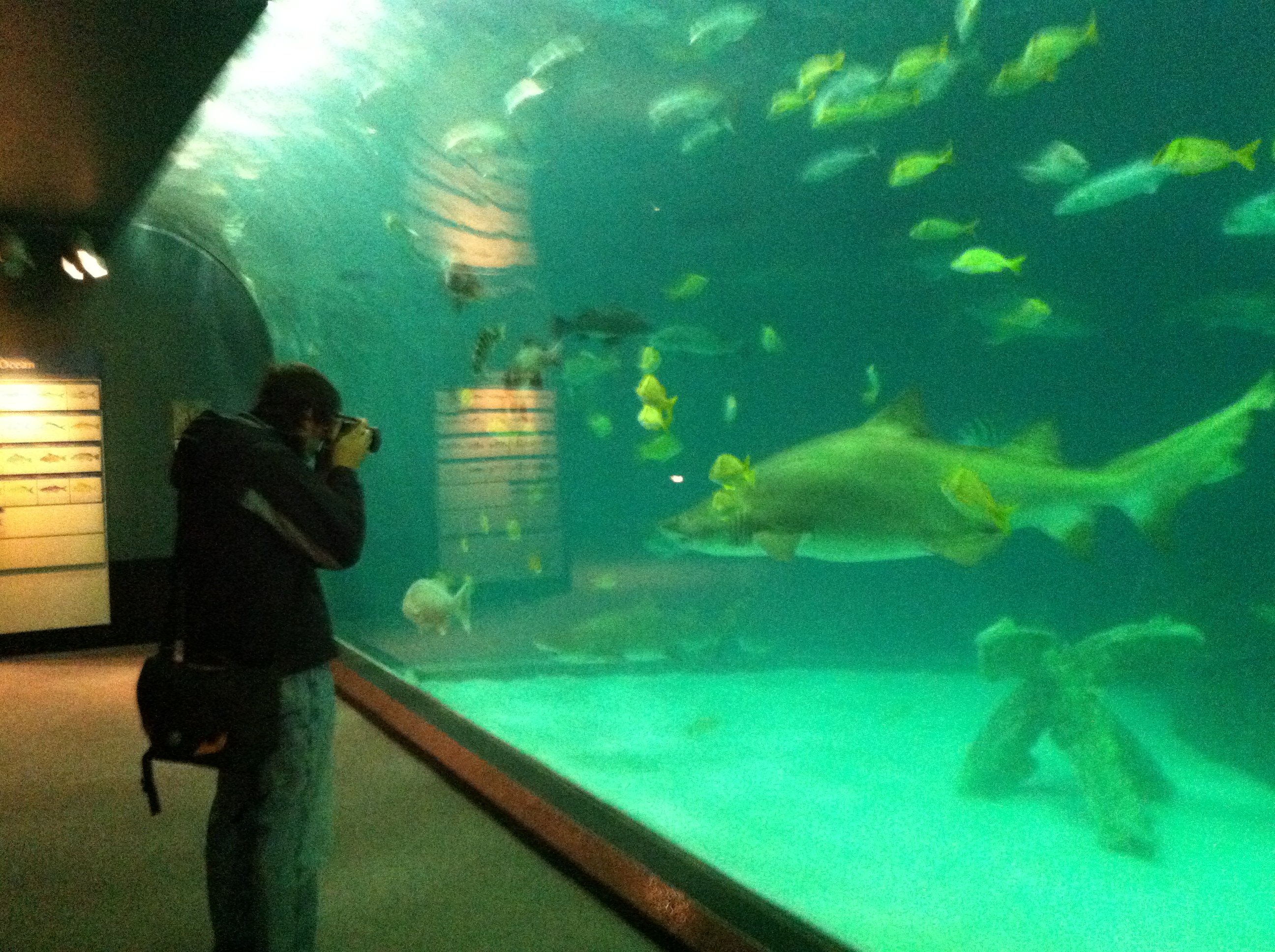 Finally, before we returned to Raleigh, we spent a morning at the Roanoke Island Aquarium, which houses many animals for its size – including my favorites, otters and sharks. The otters were too fast for me to capture on camera, but here’s a shot of Andy photographing the sharks and other big fish.