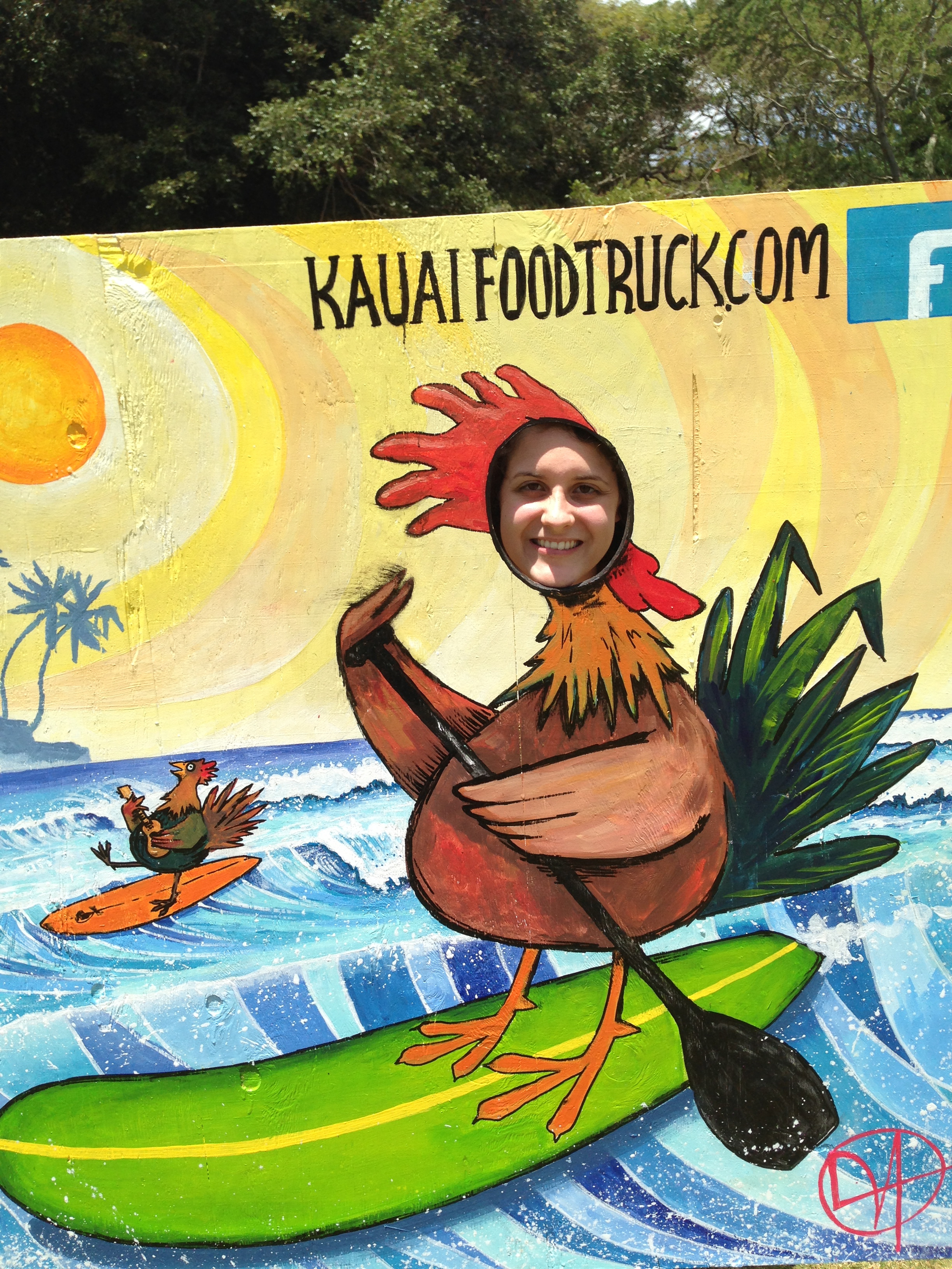 Our first day involved slower-paced exploring of Poipu as Andy and I tried to recover from the previous day of travel and a six-hour time change. Just a few miles from our condo, we ate delicious fish tacos at the Kauai Food Truck (and I posed for this photo).