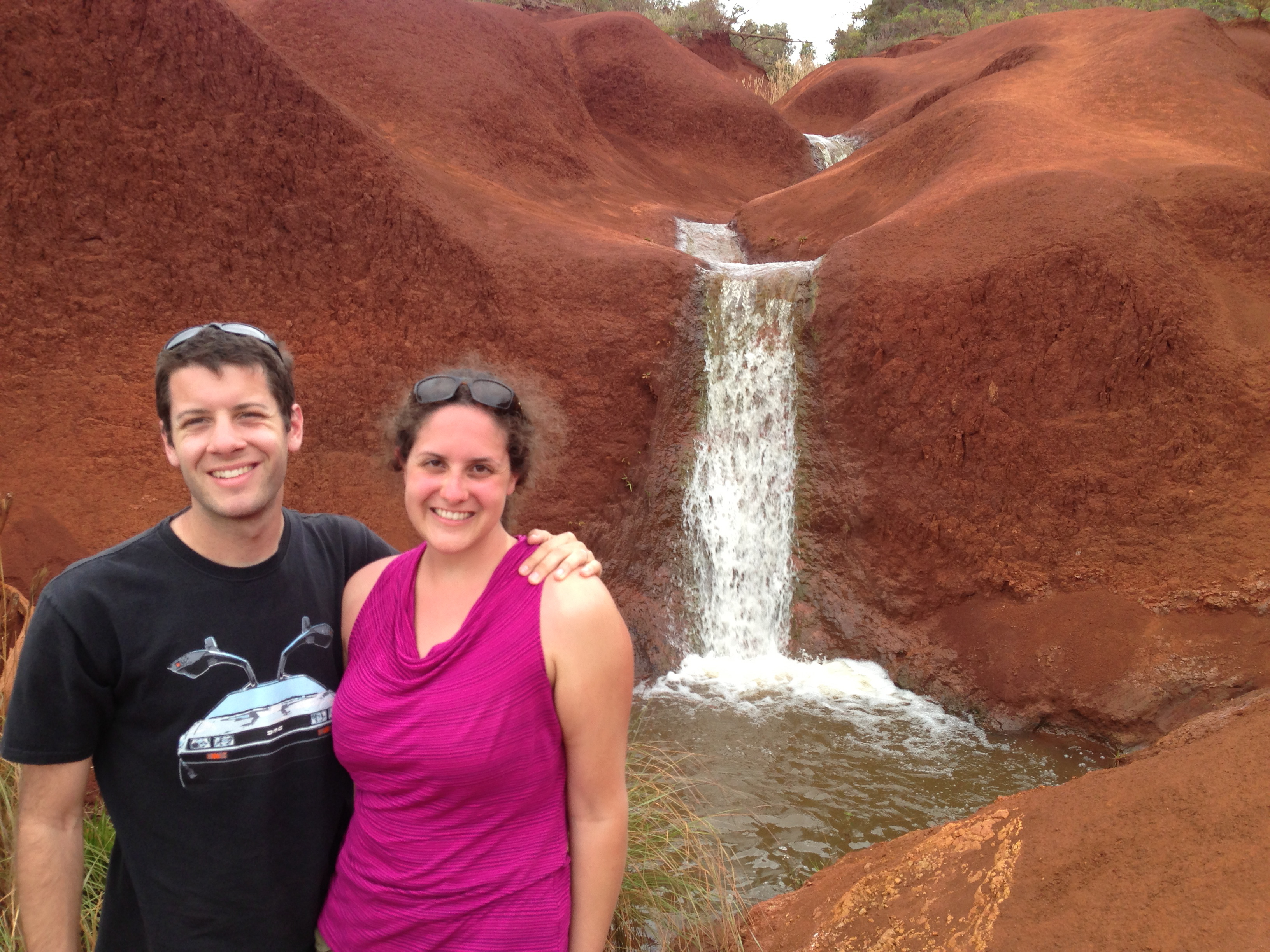 On the way down from Waimea, we stopped to check out the “red dirt” falls, which were something of a mystery to us. It’s hard to believe that waterfalls exist among the red dirt clay, but they do!